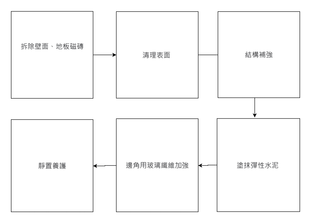 彈性水泥製作的防水層 ;1.5坪價格約為$6,000~$8,000元/間